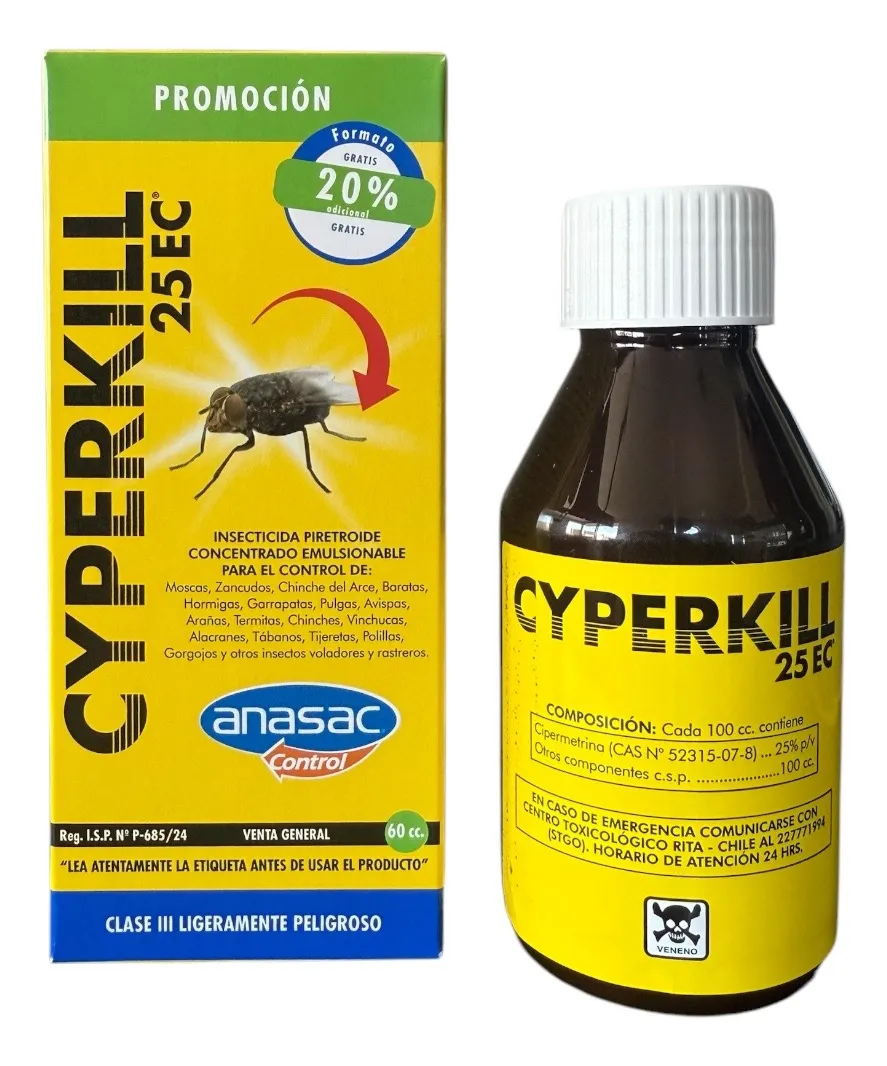 Control pulgas, Insecticida para garrapatas, Moscas y zancudos hogar, Insecticida concentrado profesional, Cyperkill Anasac 60cc